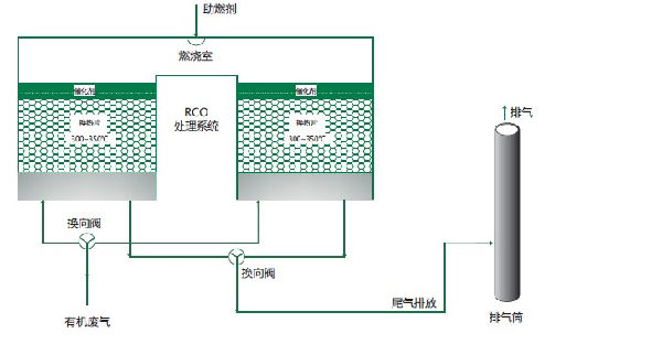 RCO處理工藝主要分為三個部分:催化劑載體吸附廢氣成分------廢氣成分與活性物質在催化劑表面進行反應-----反應產物從催化劑表面脫附